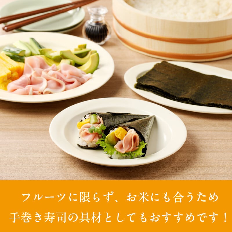 生ハム:豚ロース肉、食塩、発色剤(硝酸K、亜硝酸Na)、胡椒
